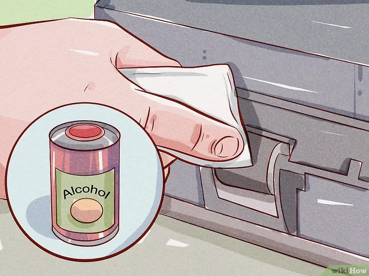3 เช็ดด้วยแอลกอฮอล์ ใช้ผ้าที่ไม่เป็นขุยจุ่มในแอลกอฮอล์พอหมาดๆ แล้วใช้ทำความสะอาดลูกกลิ้งเครื่องพิมพ์ ของคุณ ค่อยๆ ถูให้ทั่วพื้นผิวลูกกลิ้งเครื่องพิมพ์ของคุณ เช็ดลูกกลิ้งออกและเช็ดให้แห้งก่อนใช้งานเครื่องพิมพ์ของคุณ